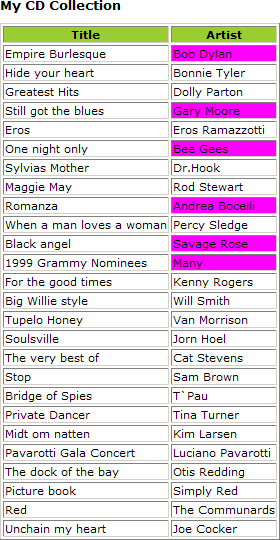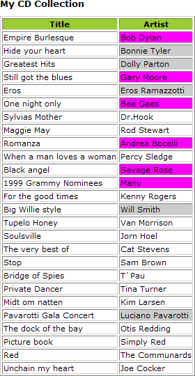 ÉÏÃæµÄ´úÂë»áÔÚ CD µÄ¼Û¸ñ¸ßÓÚ 10 ʱÏò "Artist" ÁÐÌí¼Ó·ÛÉ«µÄ±³¾°ÑÕÉ«¡£